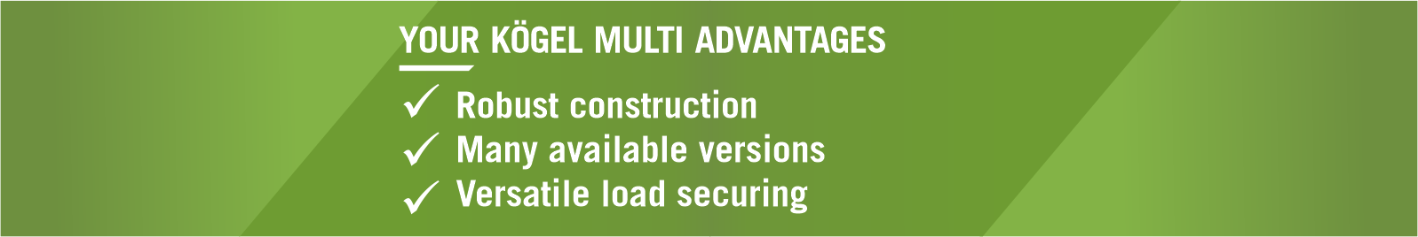 Kögel’s proven trailers are also available as platform models. Built on the chassis of various vehicle types—including Kögel Cargo, Mega, Coil, and Light—these platform trailers are designed for transporting weather-resistant freight. They can be customized with a wide range of equipment to suit your specific transport needs, extending up to the Kögel Multi.