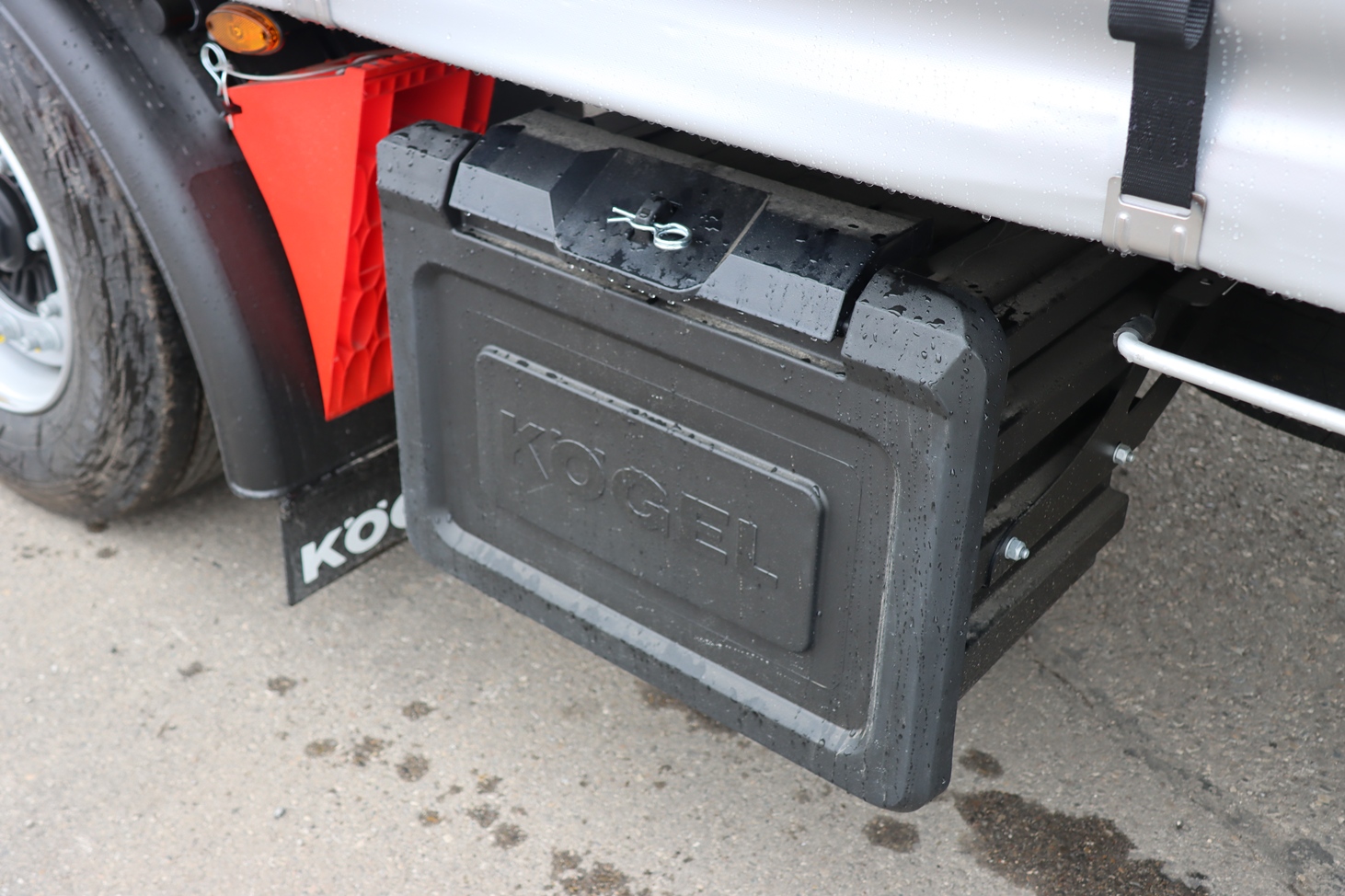 SASIU: Cadru șasiu realizat din oțel de înaltă calitate, construcție ușoară. Înălțime gât șasiu: 90 mm. Placă de cuplare cu bolt de 2". Protecții laterale conform ECE-R73. Suport pentru o roata de rezervă, montat în spatele axelor + suport suplimentar in fata axelor. Ladă de scule din plastic. Protecție anticorozivă a șasiului prin sistemul KÖGEL KTL e-coating (KTL și protecție nano-ceramică).
